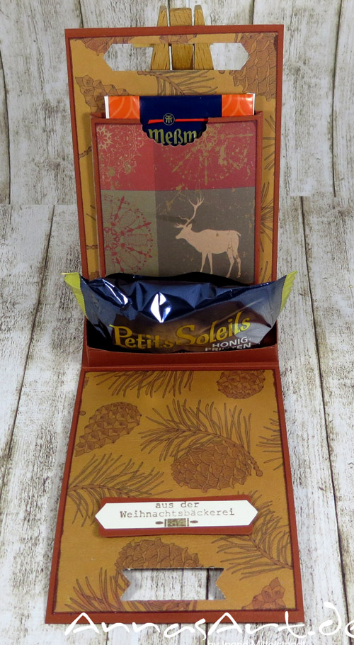 Es passt ein Tütchen Tee und ein Keks hinein. Das ist nicht ganz viel - aber es zählt der gute Wille:)))