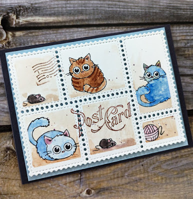 ganz besonders süße Briefmarken hast Du designt. Die Kätzchen so niedlich mit den großen Augen, die unscheinbaren Mäuschen in den Ecken. Und wieder superschön coloriert.